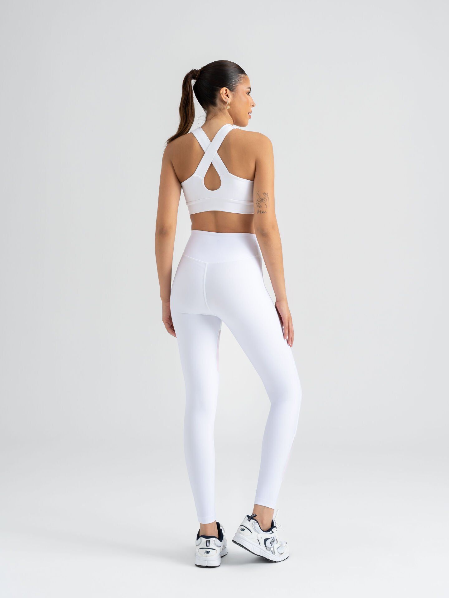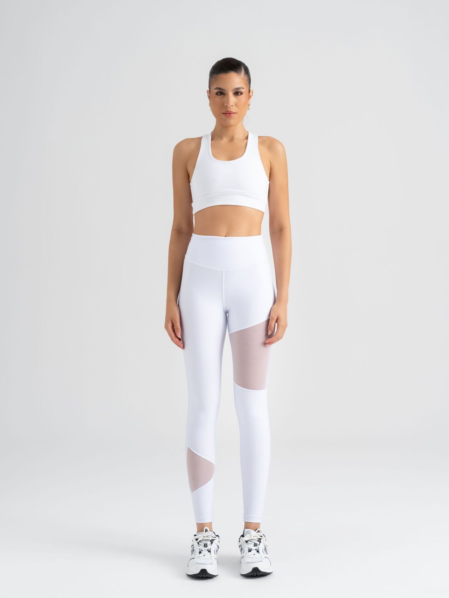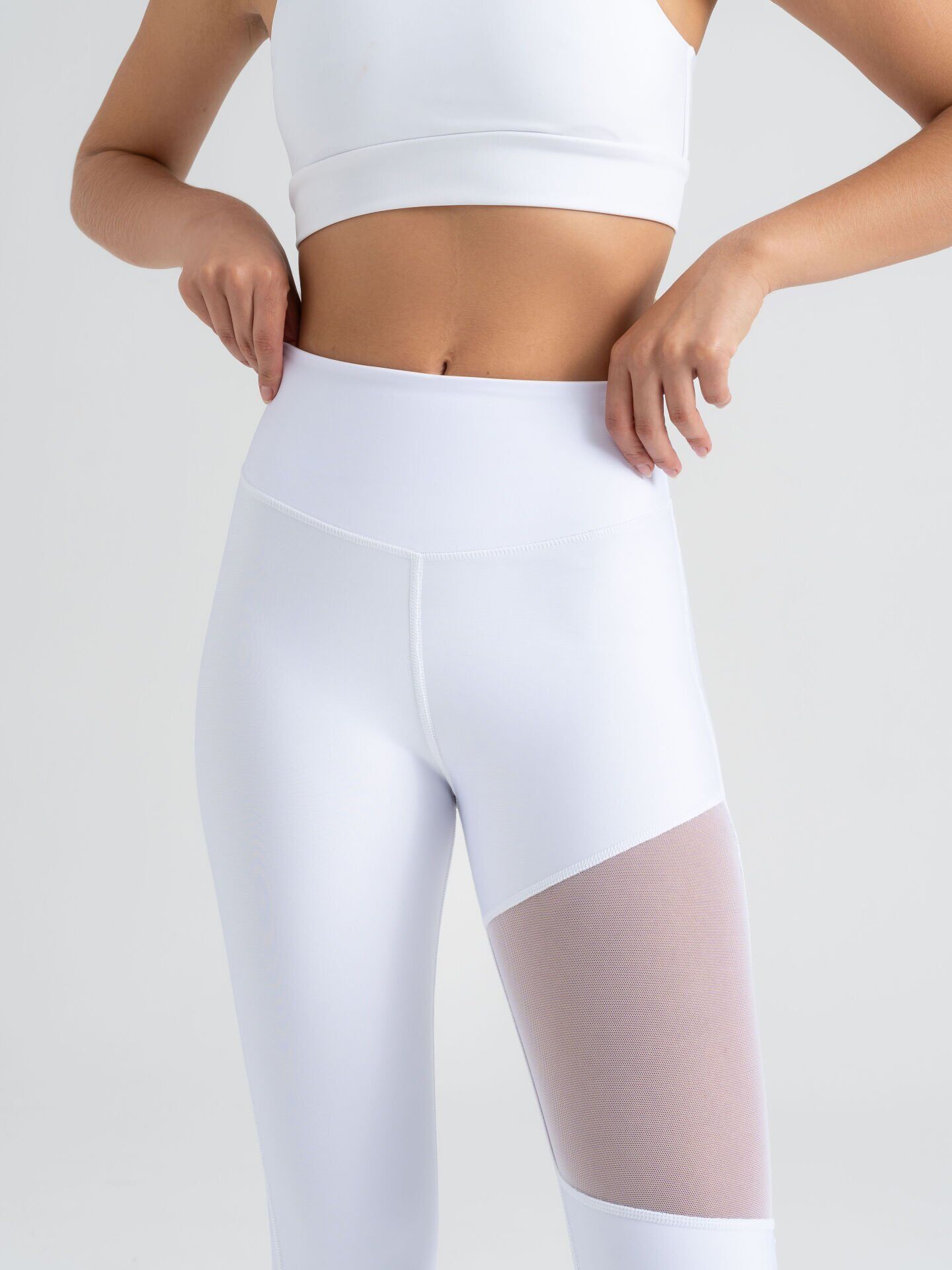 Beyaz Renk Tül Detaylı Kapri Spor Tayt