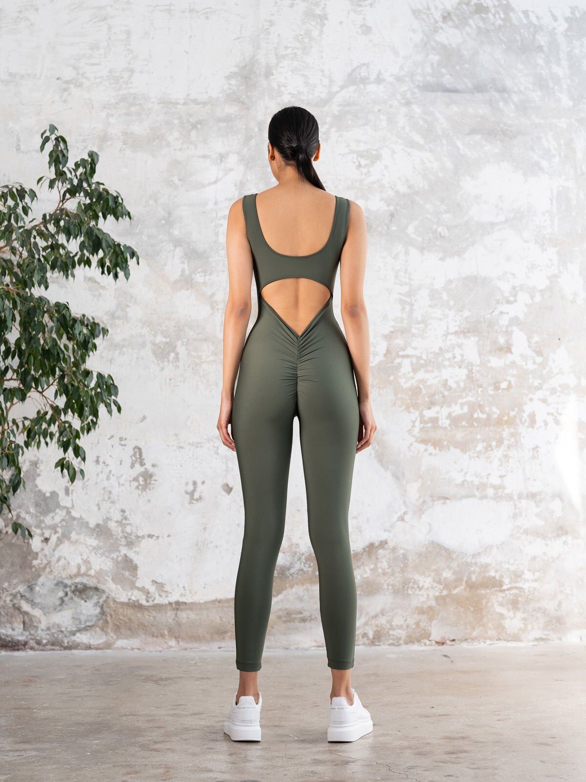 1402 Scrunch Butt Jumpsuit Khaki Color