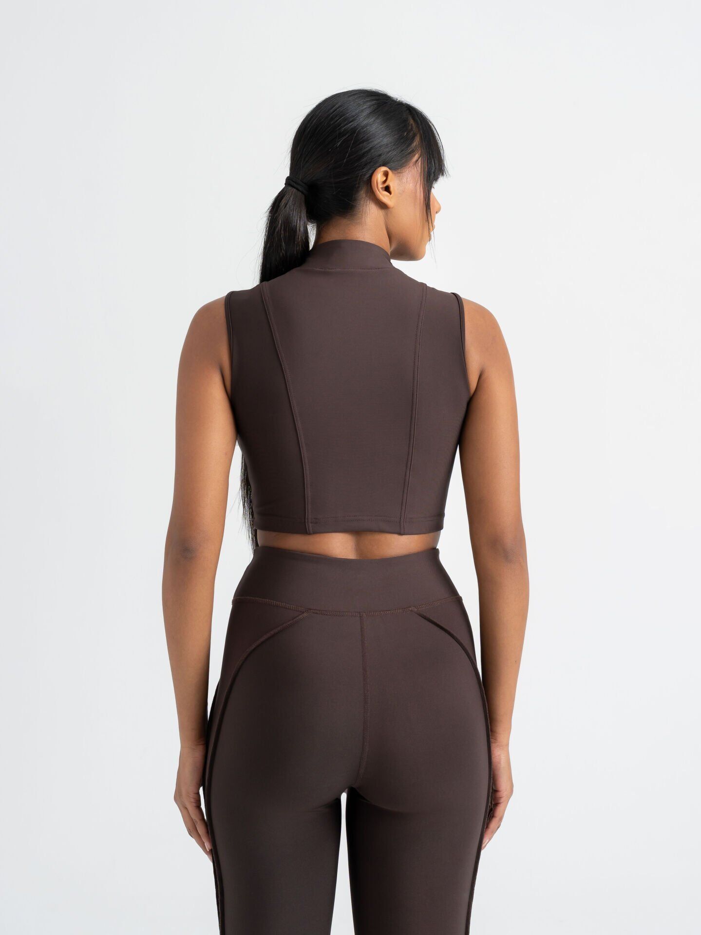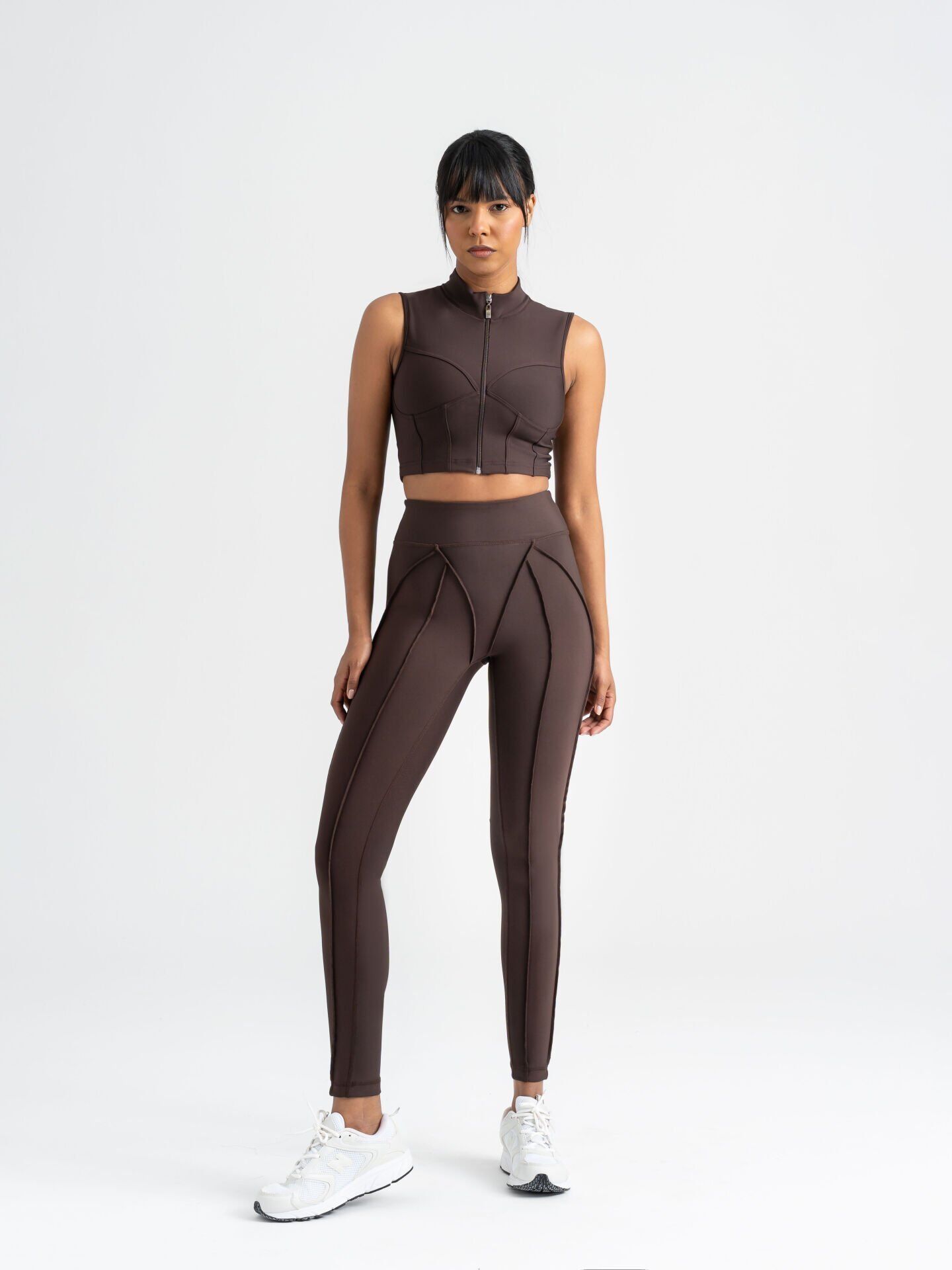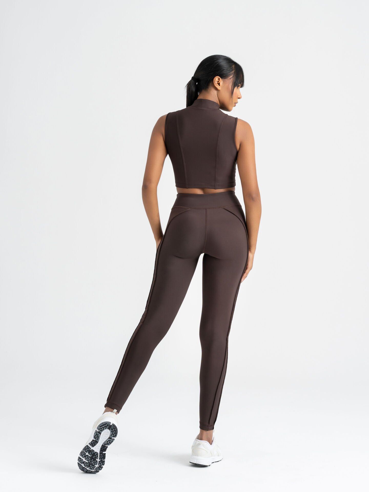 These brown leggings stand out with body-sculpting seam lines that combine sporty elegance and comfort.