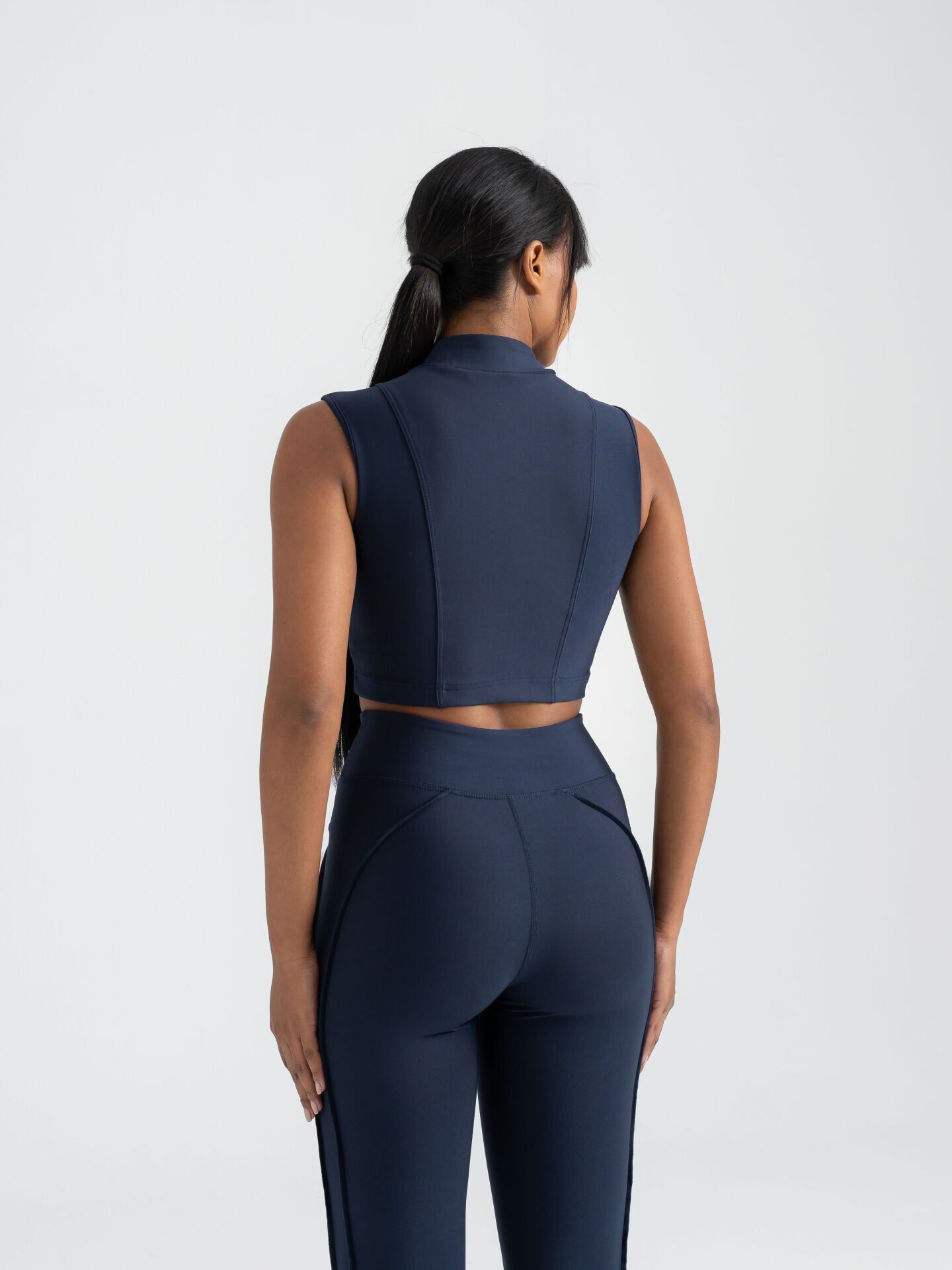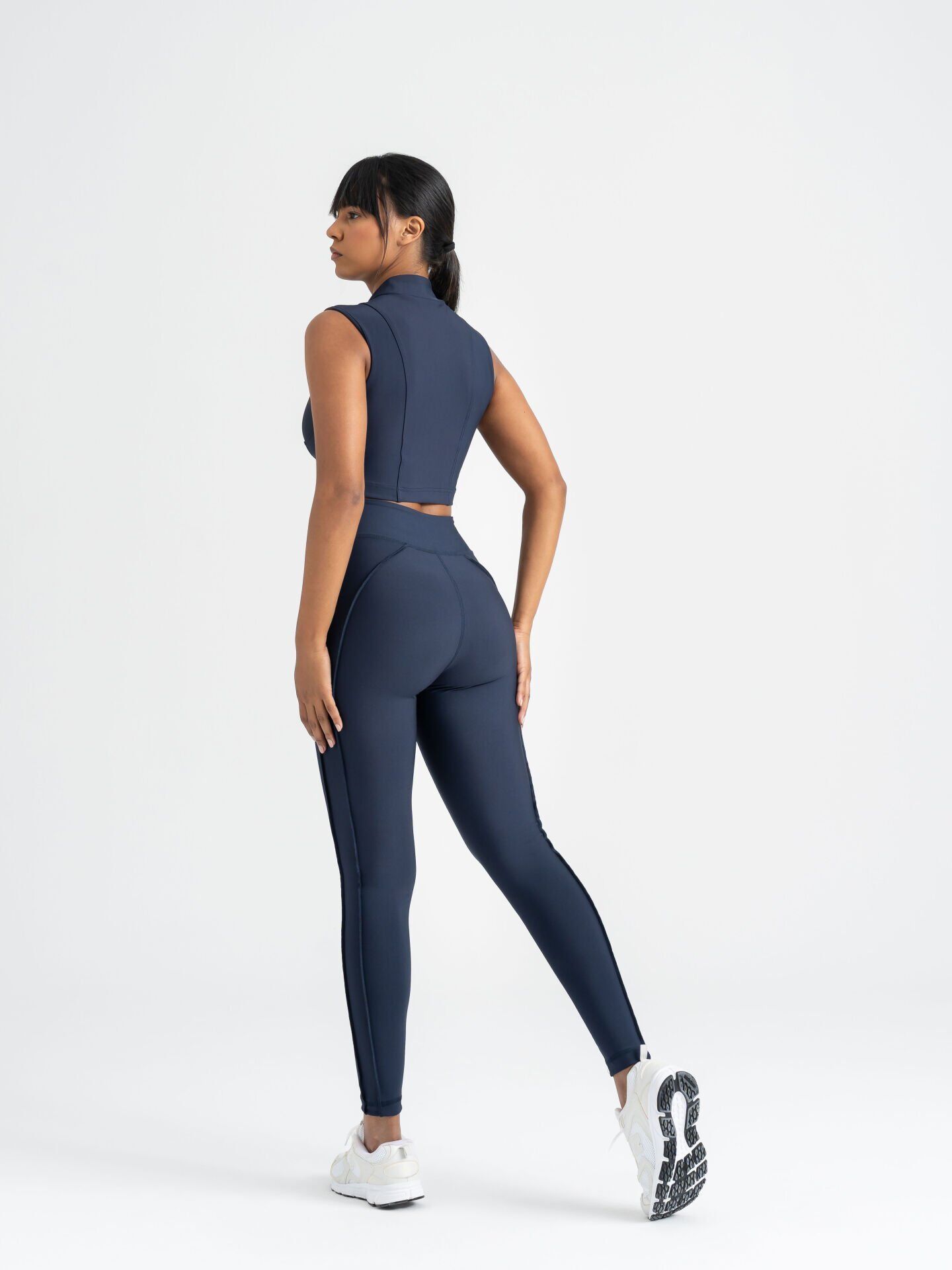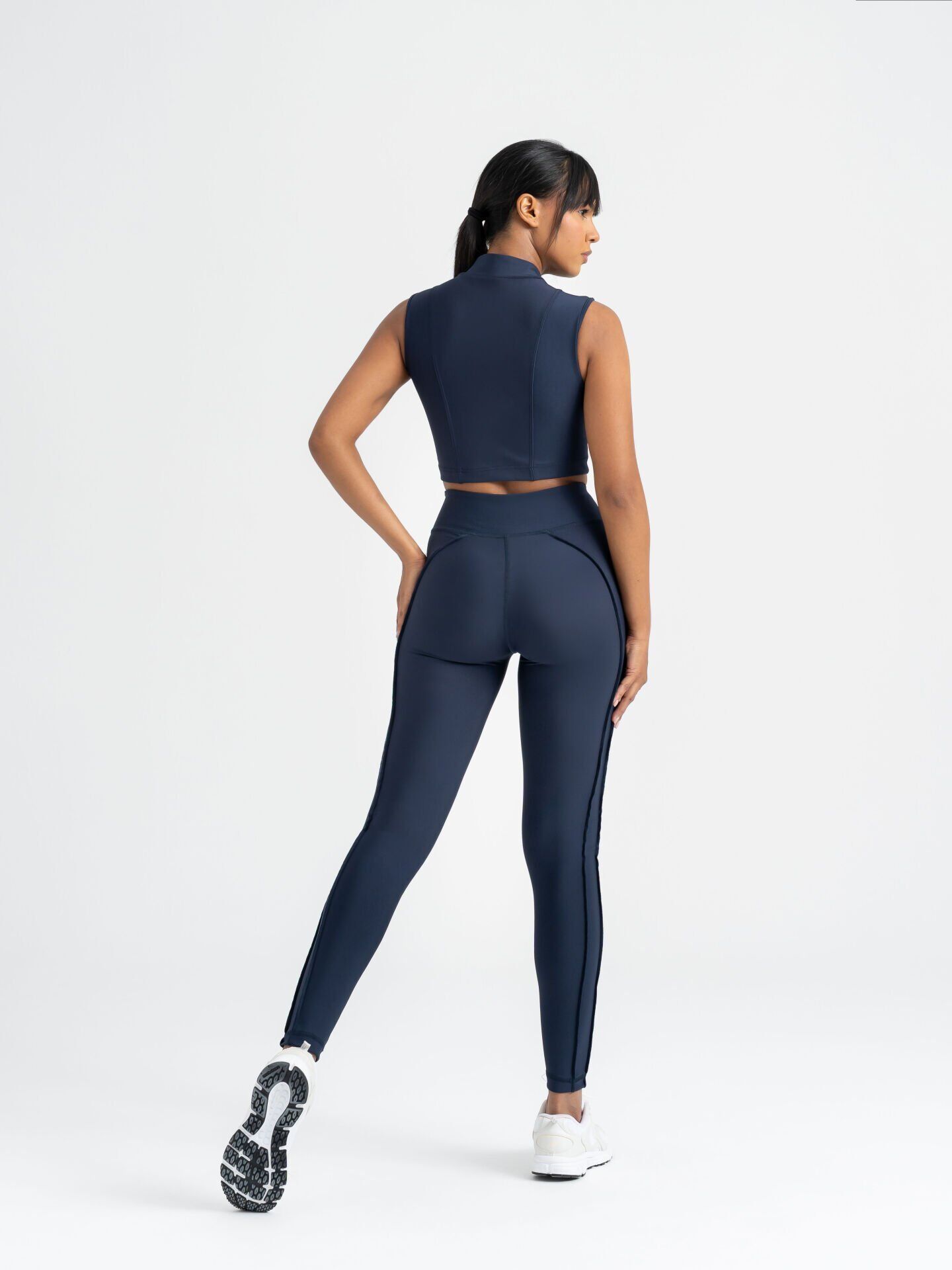 These navy blue leggings stand out with body-sculpting seam lines that combine sporty elegance and comfort.