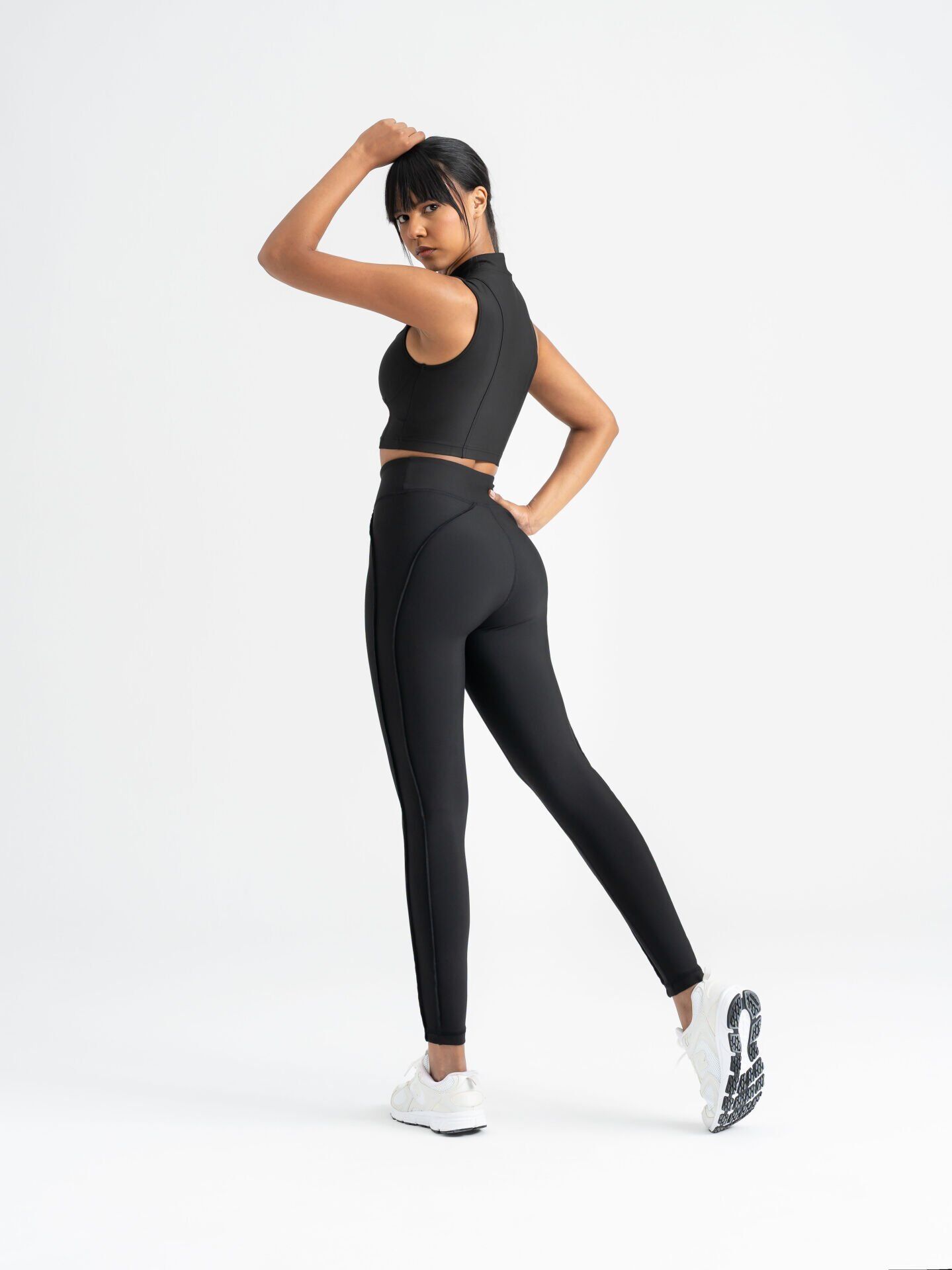 These black leggings stand out with body-sculpting seam lines that combine sporty elegance and comfort.