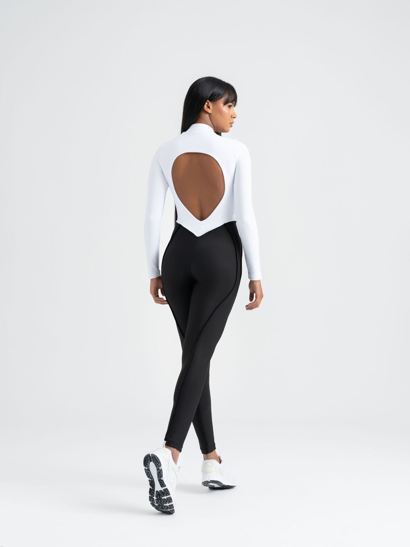 2362 Sculpt Line Jumpsuit Open Back Black - White