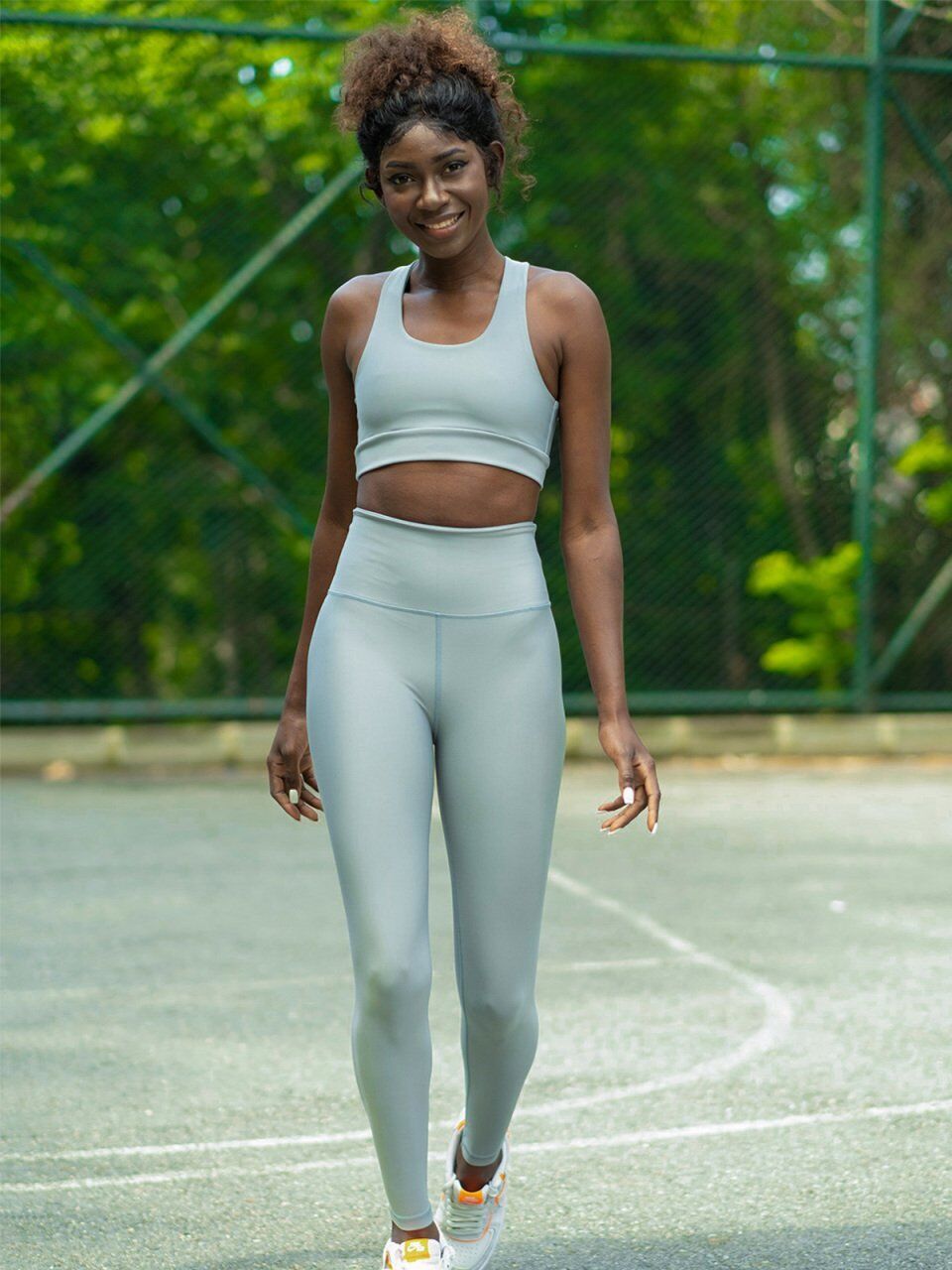 219 Single Crossed Spor Bra Water Green